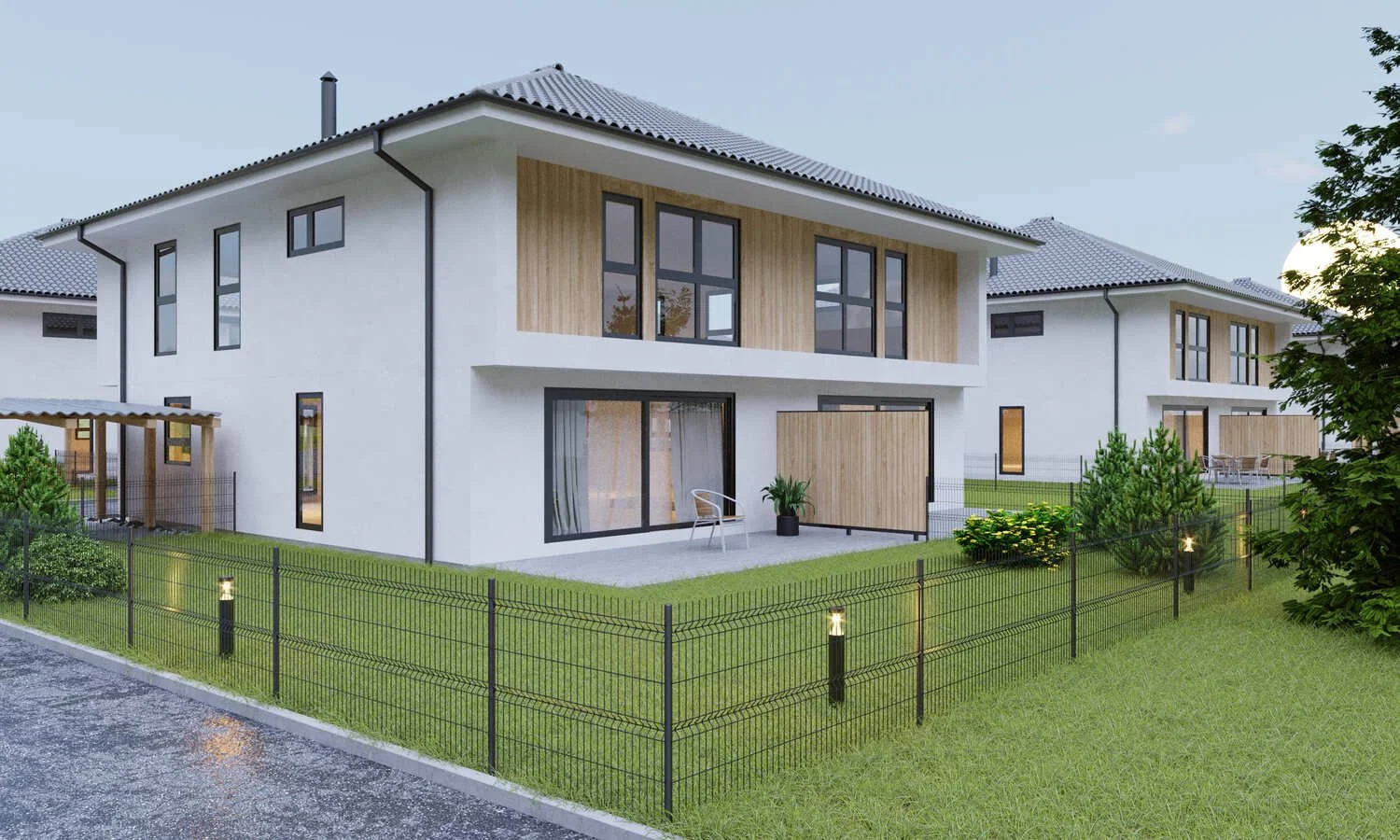 Besonders hervorzuheben ist die hohe Lebensqualität dank der dazugehörigen Gärten mit bis zu 156m². Zusätzlich verfügt jedes Haus über eine 20 m² große Terrasse.