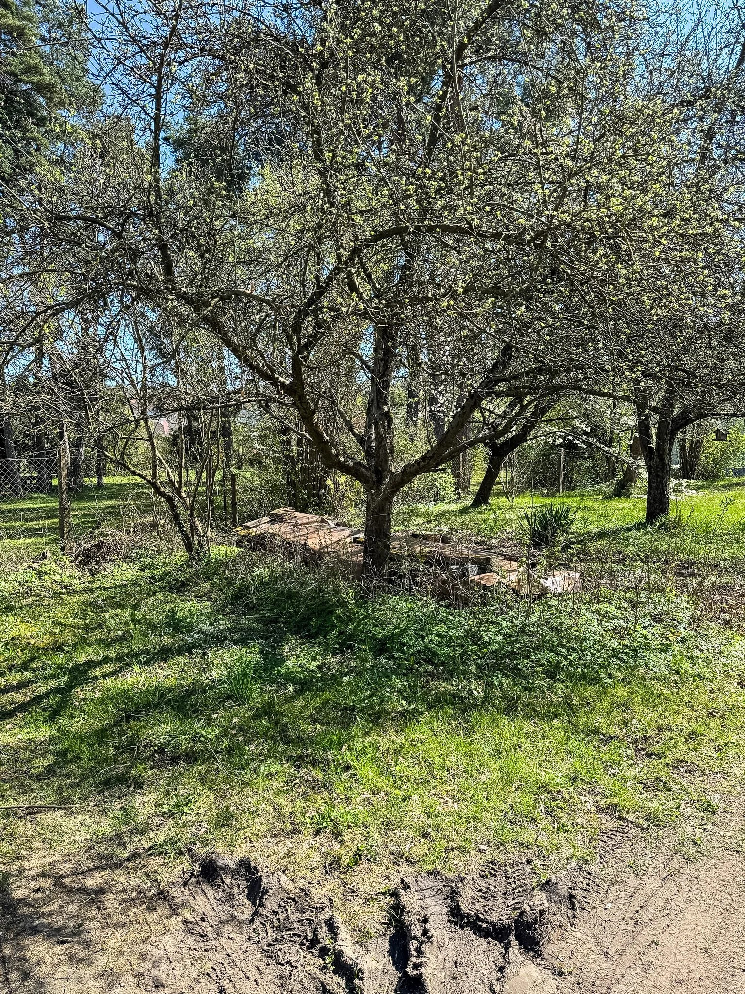 Der Garten zeigt sich aktuell naturbelassen mit altem Baumbestand, offenen Grünflächen und viel Gestaltungsspielraum.